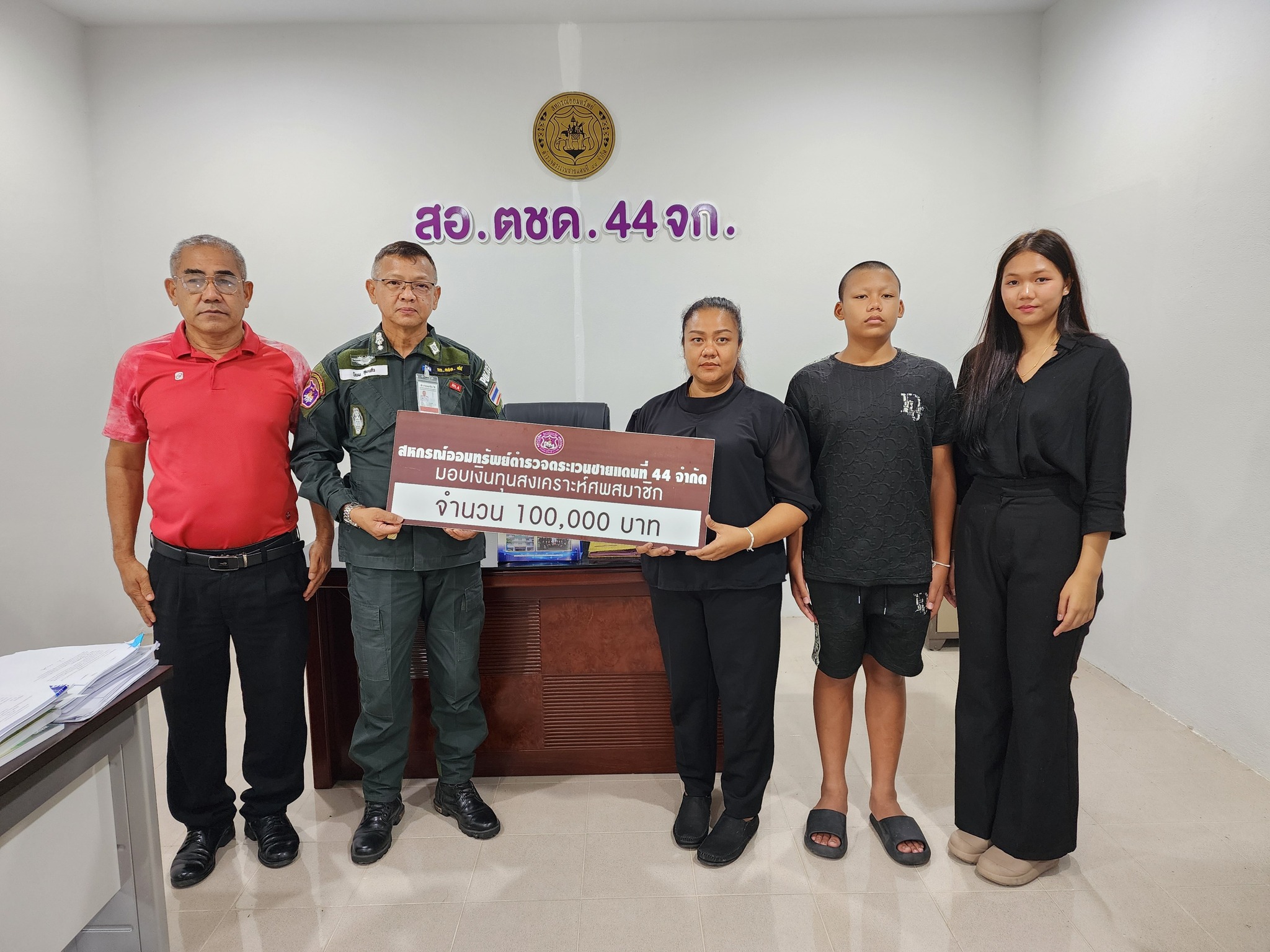 เมื่อ 13 พ.ค.68 สอ.ตชด.44 จก. พ.ต.ท.นิยม สุยแก้ว ประธานกรรมการ มอบเงินสงเคราะห์ศพสมาชิกเสียชีวิต จำนวน 100,000 บาท ให้กับทายาท ด.ต.อิศเรศ อินทรเพ็ชร